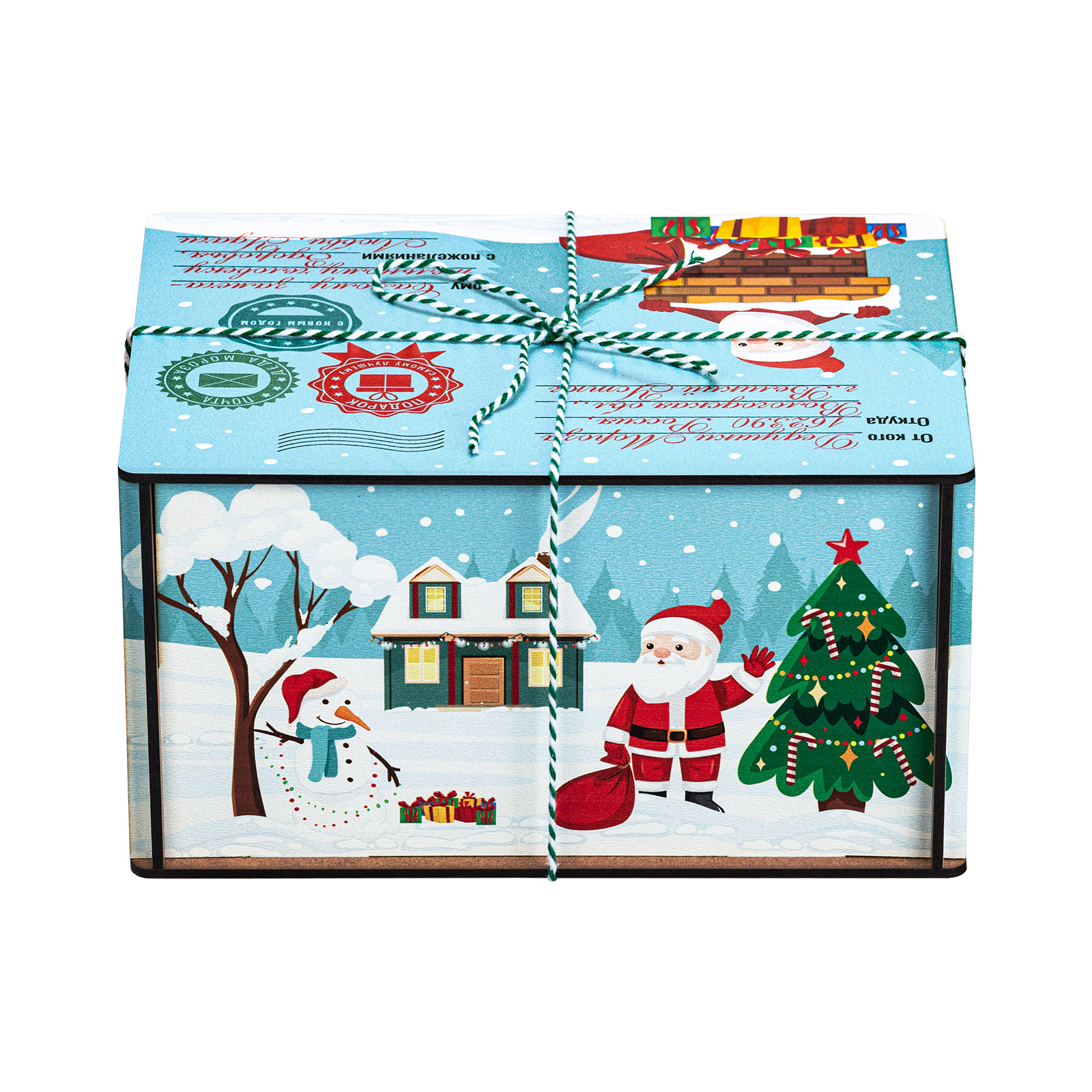 Новогодние сладкие подарки в деревянных упаковках уже не первый год пользуются высоким спросом у покупателей. Это не просто так - такие подаркаи отличаются оригинальностью и практичностью. Набор “Мятная ночь” не исключение. Это небольшая деревянная коробочка с виду напоминающая бандероль. Упаковка отличается необычным приятным цветом, который прекрасно сочетается  с разннобразными новогодними рисунками, помещенными со всех сторон. Сверху подарок перетянут удобной ручкой-шнурком. Набор состоит из килограмма разнообразных кондитерских изделий и небольшой памятный сувенир в виде лошадки - символа 2026 года.