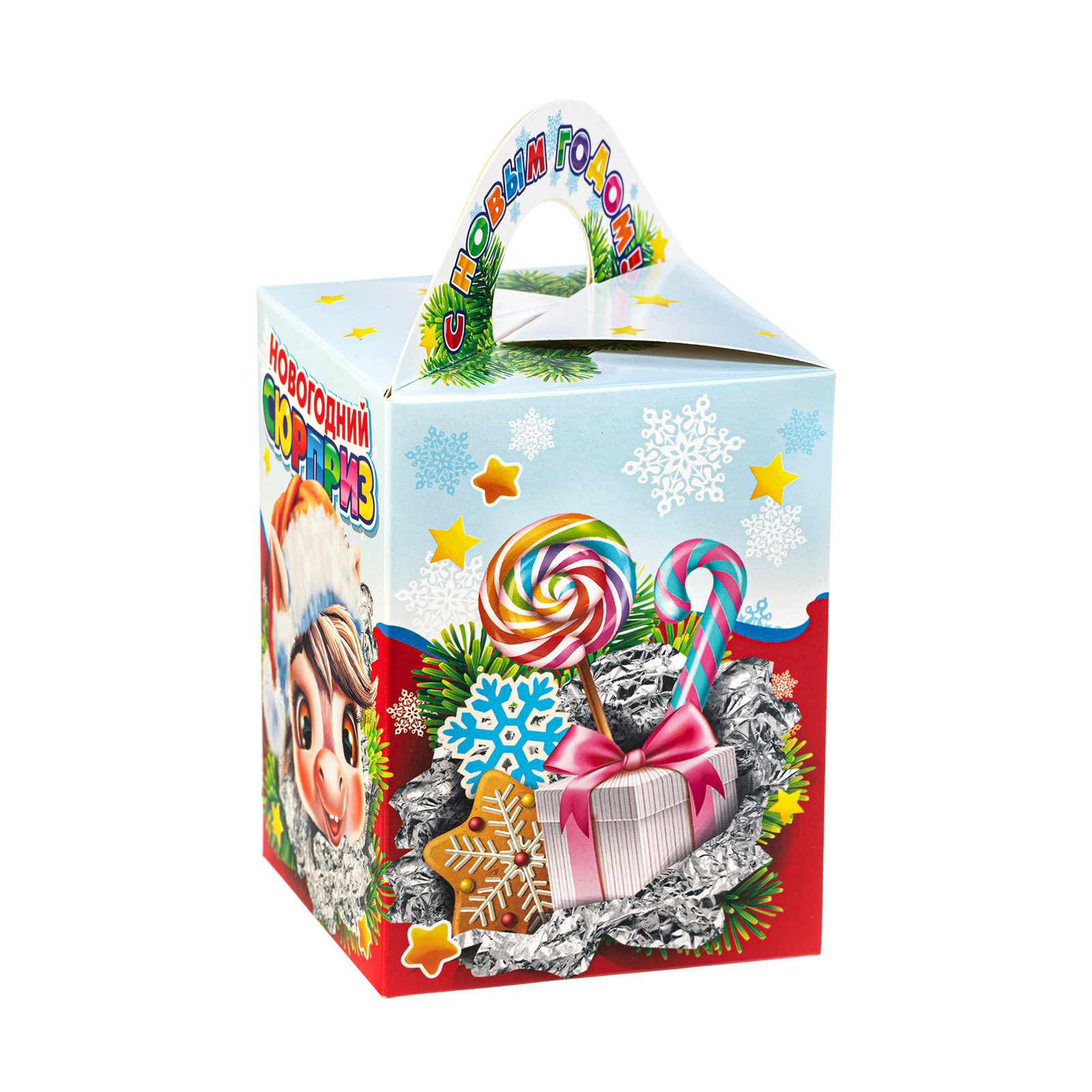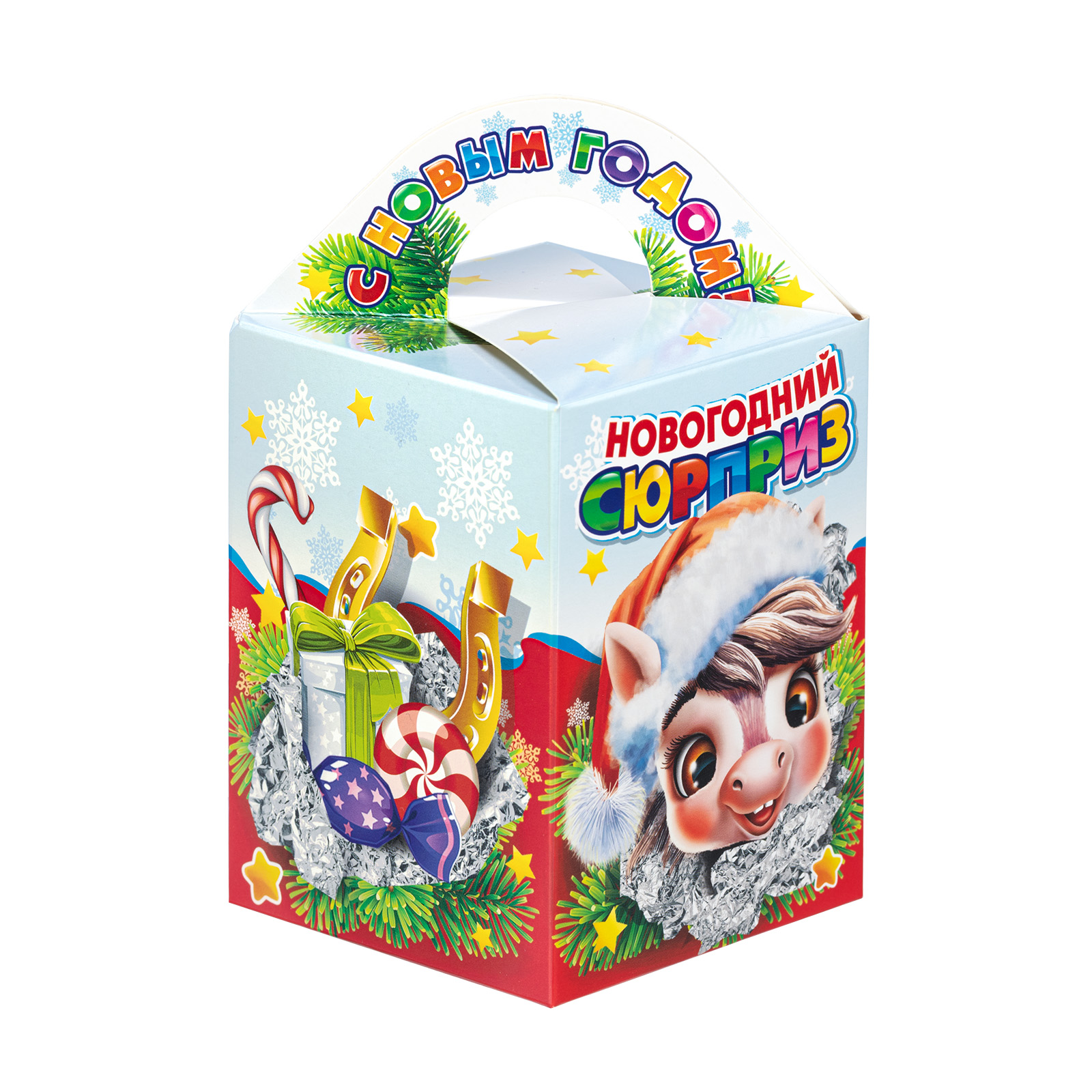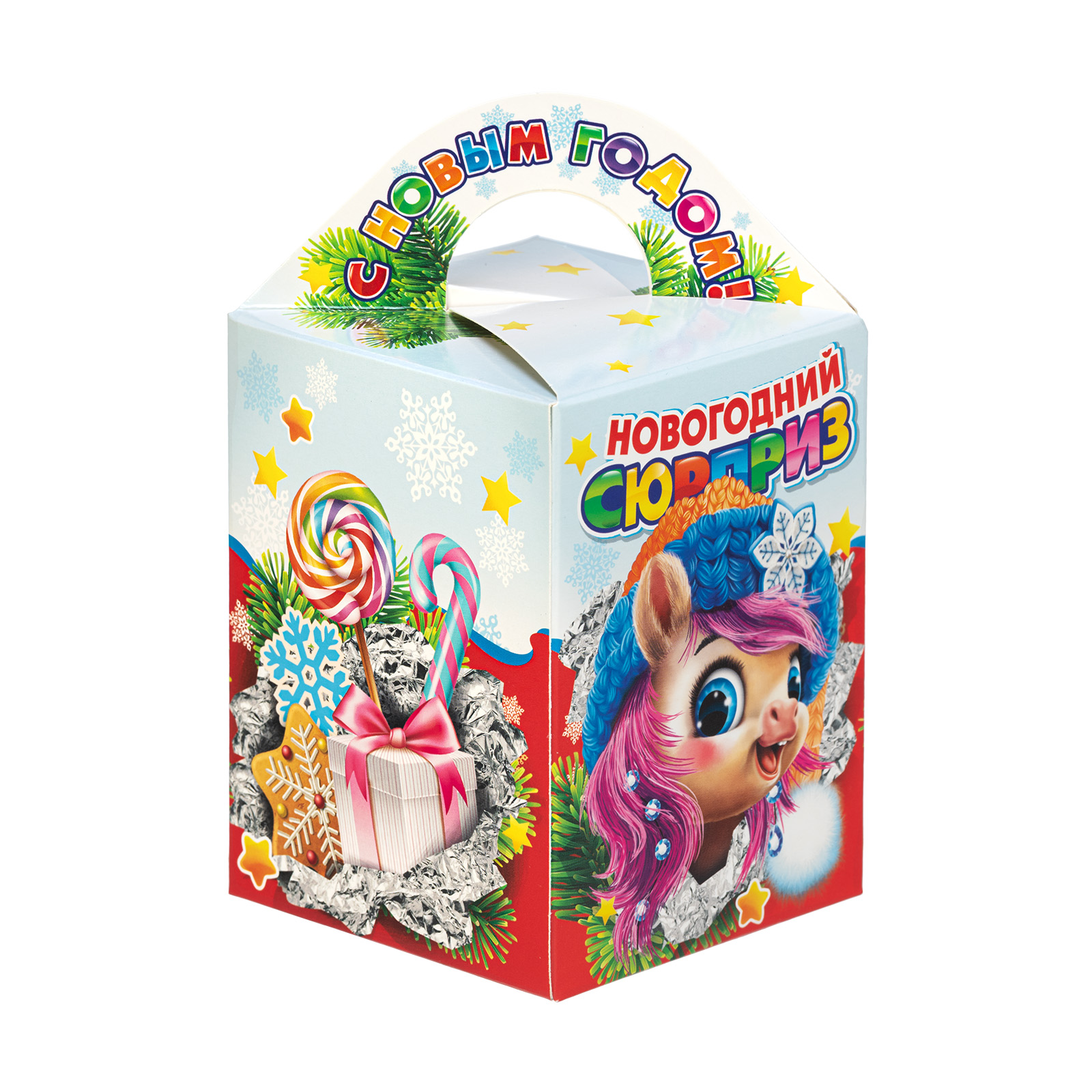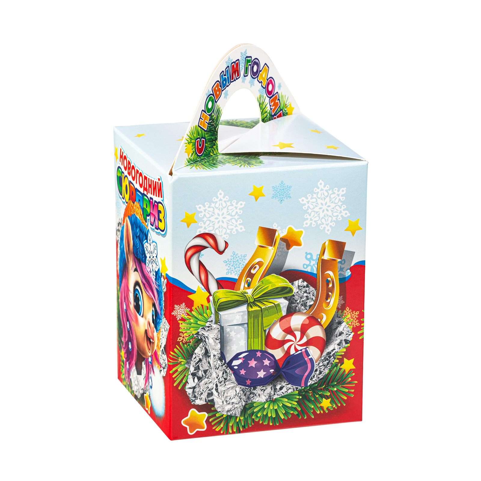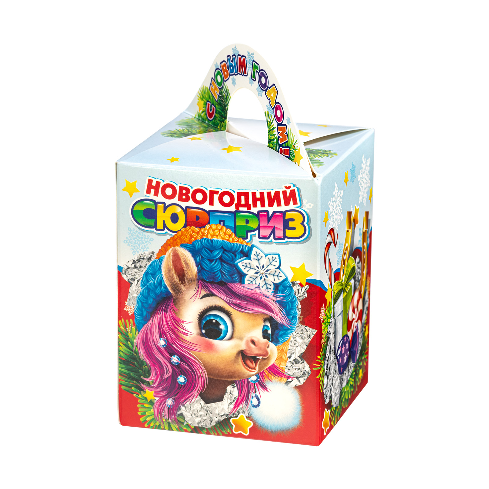 Новогодние сладкие подарки в картонной упаковке - эта та самая классика, которая всегда будет в моде. Подарочный набор “Вкусный привет” - прекрасный выбор для маленьких сластен. Такой подарок можно смело приобрести на утренник в детский сад, чтобы торжество стало еще более приятным и запоминающимся. Подарочная упаковка по форме напоминает небольшой фонарик. На приятном бледно-голубом фоне изображены яркие иллюстрации, а маленькая удобная ручка и оформлена под еловую веточку. Но самым главным украшением является изображение символа наступающего года - чудесная маленькая лошадка с приветливой улыбкой и добрыми голубыми глазками. В состав подарка входит 20 разнообразных вкусных сладостей, которые придутся по вкусу малышам!